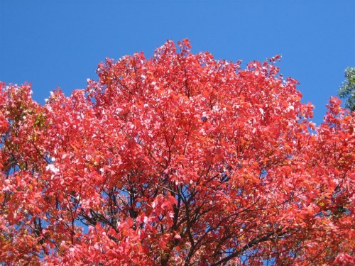 This picture was taken right around the corner from my house. It's my favorite of the ones I've taken of fall colors this year. The red is really vibrant, and the blue sky in the background makes everything look even brighter.