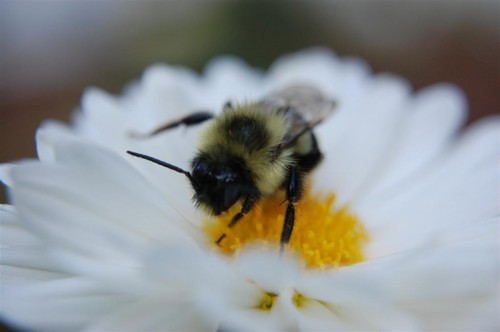 This little fella was perched on the flowers out in front of our house. It was kind of cold outside, so he wasn't moving much.